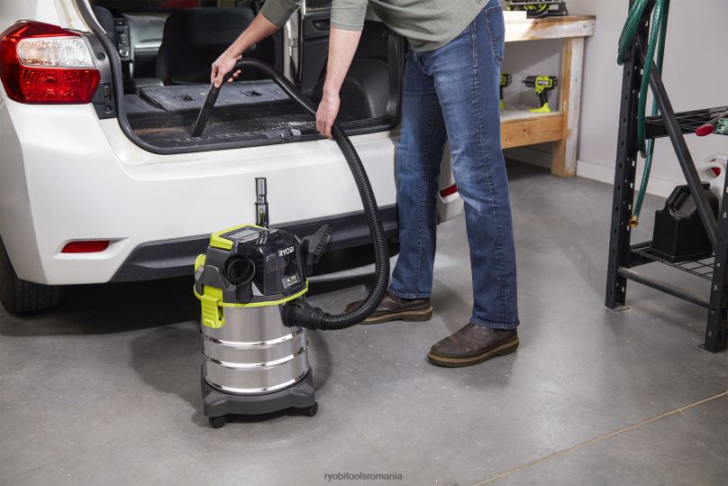extinde-ți sistemul ryobi 18v one+ cu aspiratorul fără fir pwv201b de 4,75 galoane umed/uscat (numai unealta). acest aspirator alimentat de 18 V oferă confortul unui instrument fără fir și oferă o putere puternică de 40 cfm. acest aspirator are o cuvă din oțel inoxidabil pentru o durabilitate sporită. cele patru roți pivotante se rotesc la 360 de grade, ceea ce oferă o mobilitate echilibrată maximă, rulând peste obstacole, cum ar fi cablurile. Depozitarea integrată pentru accesorii ține în mod convenabil bagheta telescopică de extensie, unealta pentru crăpături, duza de podea și peria de praf. furtunul flexibil de 5 ft. x 1-3/8 in. se răsucește bine în poziție pentru a evita deconectarea accidentală. aspiratorul ryobi pentru umezeală/uscare de 4,75 galoane are un mâner pliabil care facilitează transportul la mizerie și se așează pe plan plat și depozitat după terminarea lucrării. thÎncuietoarele supradimensionate permit demontarea cu ușurință a capacului și golirea rezervorului. acest vid include un filtru de spumă pentru aplicații umede și un filtru cu cartuș pentru aplicații uscate. susținut de garanția producătorului ryobi de 3 ani, aspiratorul 18v one+ 4,75 galoane umed/uscat include un furtun flexibil de 5 ft. x 1-3/8 in., baghetă de extensie telescopică, unealtă pentru crăpături, duză pentru podea, perie de praf, filtru de spumă , cartuș de filtru și manuale de utilizare. bateria și încărcătorul sunt vândute separat.