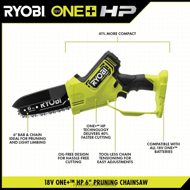 RYOBI 18v one+ hp 6 ferăstrău compact pentru tăiere fără perii în aer liber A68ND353