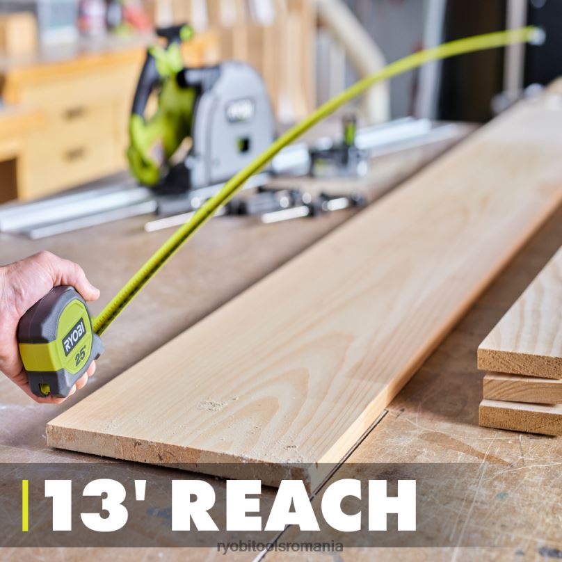 Ronda de măsurare compactă ryobi de 25′ are o rază de 13′ care permite măsurarea rapidă pe distanţe lungi, permiţându-vă să ajungeţi până la 13′ fără ajutor. marcajele fracționate asigură citirea rapidă și ușoară a măsurătorilor cu acuratețe, în timp ce stratul durabil de nailon de pe lama benzii prelungește durata de viață a benzii. corpul rezistent la impact oferă o durabilitate suplimentară care vă protejează banda împotriva căderilor la locul de muncă și acasă. în cele din urmă, clema cu formă de sârmă se atașează confortabil și sigur de centură sau de buzunar pentru un acces rapid și ușor pe tot parcursul zilei. Uneltele de mână ryobi oferă o varietate extinsă de soluții pentru a face față oricărei lucrări, astfel încât să nu fiți niciodată prinși cu mâna goală. banda de măsurare compactă ryobi 25′ este susținută de garanția limitată pe viață ryobi.