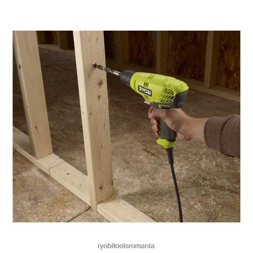 burghiutul cu fir ryobi 3/8 in. vsr dispune de un motor de 5,5 amperi care oferă până la 1.600 rpm pentru găurire puternică într-o varietate de materiale. declanșatorul cu viteză variabilă vă ajută să potriviți viteza cu aplicația, în timp ce caracteristica de blocare permite găurirea continuă și ajută la reducerea oboselii operatorului în timpul perioadelor lungi de găurire. mânerul ergonomic include o zonă de prindere pentru confort în timpul utilizării.
