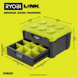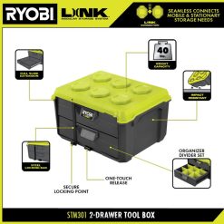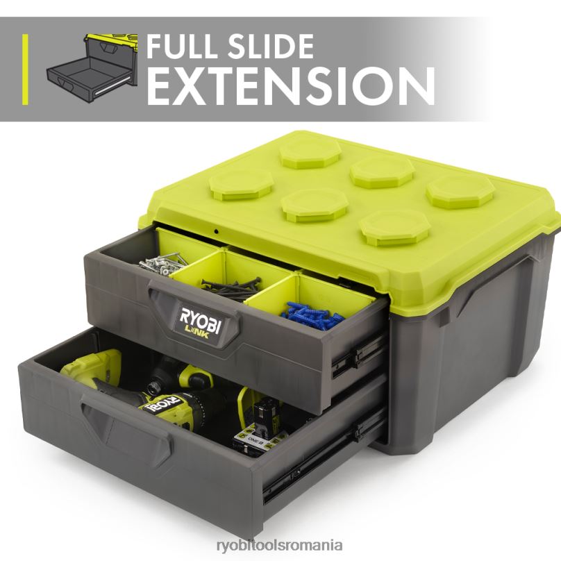 sistemul modular de stocare ryobi link revoluționează industria de depozitare, permițându-vă să vă organizați, să accesați și să vă transportați viața. cutia de instrumente cu 2 sertare ryobi link oferă depozitarea sculelor în cele mai dificile situații. echipat cu material rezistent la impact și o capacitate de încărcare de 40 lb. asigurați-vă cu ușurință depozitarea uneltelor portabile cu bara de blocare din oțel și punctul de blocare sigur. glisierele cu extensie completă asigură o funcționare lină, în timp ce setul de despărțitor organizator inclus oferă o organizare maximă a depozitării instrumentelor ryobi, păstrând piesele mici la locul lor. stivuiți fără probleme pe orice element de stocare mobil ryobi link. aceasta este completarea perfectă pentru gama dvs. de instrumente mobile. cel mai bun dintre toate, face parte din linia de produse de sisteme modulare de stocare ryobi link care utilizează același lotehnologia cking pentru a vă conecta fără probleme nevoile dvs. de stocare mobilă și staționară. dețineți spațiul dvs. cu sistemul de stocare modular ryobi link.