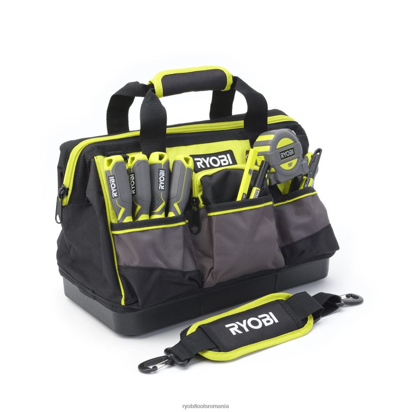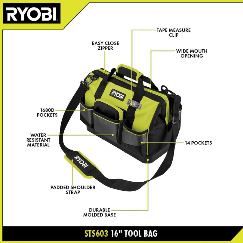 geanta de scule ryobi de 16″ este proiectată să reziste la cele mai dure condiții de lucru, cu buzunarele 1680d rezistente și material rezistent la apă. cele 14 buzunare, clema de măsurare a bandă integrată și deschiderea largă a gurii oferă acces ușor la instrumente pentru a vă menține organizat în deplasare. cureaua de umăr căptușită confortabilă și fermoarul de închidere ușor oferă o experiență perfectă în timp ce vă deplasați dintr-un loc în altul.