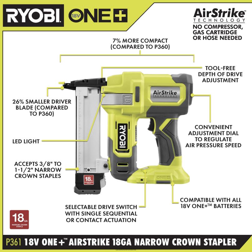 extindeți-vă sistemul ryobi 18v one+ cu capsatorul fără fir de 18v one+ cu coroană îngustă de calibre 18 (numai unealta). acest capsator cu coroană are tehnologia airstrike, care elimină nevoia de compresoare zgomotoase, furtunuri voluminoase sau cartușe scumpe de gaz. aceasta înseamnă o instalare mai rapidă și o manevrabilitate ușoară la locul de muncă. capsatorul cu coroană îngustă ryobi p361 este capabil să scufunde capse de până la 1-1/2″ în lemn de esență tare. În plus, este cel mai ușor capsator cu coroană îngustă fără fir din clasa sa, ceea ce ajută la prevenirea oboselii utilizatorului. acest capsator permite perioade lungi de continuă funcționează prin scufundarea a până la 1.700 de capse per încărcare. oferă, de asemenea, o lamă de șofer cu 26% mai mică pentru o calitate superioară a antrenamentului, în comparație cu p360. Există o adâncime de reglare a acționării fără instrumente.la permite fixarea corectă a capetelor de unghii. excelent pentru lucrul cu zăbrele și acoperirea podelei, acest capsator pentru coroană este completarea perfectă pentru orice colecție de unelte pentru dulgher sau vopsitor. acest instrument este susținut de garanția producătorului ryobi de 3 ani și include o baterie de 1,5 ah, un încărcător de 18 V și un manual de utilizare.