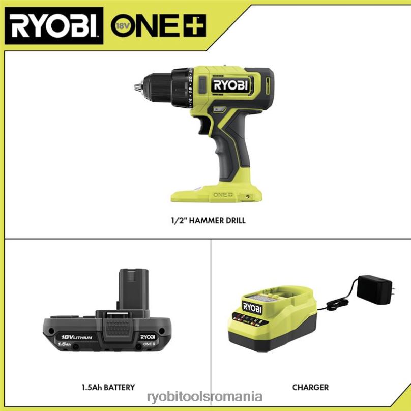 RYOBI kit de găurit cu ciocan 1/2 one+ 18v fără acumulator Unelte electrice A68ND22