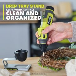 ryobi introduce stiloul lipici usb cu litiu. stiloul lipici USB cu litiu are o încălzire rapidă în mai puțin de 30 de secunde, cu un indicator luminos LED care vă anunță că este gata de utilizare. pârghia glisantă pentru adeziv oferă precizie și control maxime, permițându-vă abilitatea de a determina cât de repede poate fi dispersat adezivul. suportul metalic pentru tavă de picurare asigură spațiul dvs. de lucru curat și organizat atunci când ați terminat proiectul. acest produs are un indicator LED pentru a semnala când bateria este încărcată (verde) sau are bateria descărcată (roșu) în timpul utilizării. stiloul cu litiu USB este o parte a sistemului USB cu litiu care oferă soluții compacte, portabile și reîncărcabile pentru putere și productivitate fără fir. acest stilou lipici USB cu litiu este susținut de garanția producătorului Ryobi de 2 ani și include, pix cu lipici, baterie litiu USB fvb01, 3 mini bețișoare de lipici, suport pentru tavă de picurare, cablu USB și manuale de utilizare