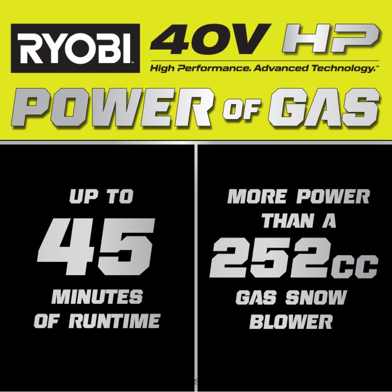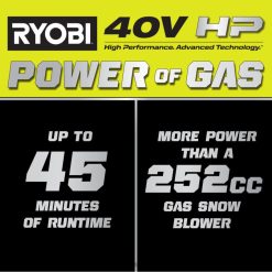 intra în sistemul ryobi 40v cu kitul ryobi 40v hp brushless de 24 inchi. Tehnologia 40v hp oferă mai multă putere decât un 252cc freză de zăpadă cu gaz, ceea ce face din aceasta un adevărat înlocuitor de gaz, aruncând zăpadă până la 55′. Tehnologia de 40 V CP combină motoare fără perii, electronică avansată și tehnologia cu litiu de înaltă performanță pentru a oferi puterea gazului fără bătăi de cap. Această freză de zăpadă are până la 45 de minute timp de funcționare pentru a curăța până la 31 de spații de mașină folosind (4) porturi active pentru baterie și (4) baterii de 40 V 6 Ah. Ca parte a seriei Whisper, este proiectat să fie cu 35% mai silențios decât gazul și chiar și alte freze de zăpadă fără fir, permițându-vă pentru a lucra în orice moment al zilei. Lățimea de defrișare de 24 inchi și adâncimea de defrișare de 21 inchi îl fac ideal pentru trotuare mari și alei.Sistem de antrenare autopropulsat cu viteză capabilă pentru a termina lucrarea rapid și fără efort. pentru un control și durabilitate sporite, melcul din oțel cu viteză variabilă se ocupă de curățarea grea și are o jgheab direcțională de 180 de grade. reîncărcați (2) baterii de 40 V 6 Ah simultan în mai puțin de 60 de minute. cel mai bun dintre toate, face parte din sistemul ryobi 40v în care orice baterie de 40v funcționează cu orice produs de 40v. acest kit de suflantă de zăpadă fără perii de 24 inchi de 40 V este susținut de garanția de 5 ani a producătorului ryobi pentru scule, garanție de 3 ani a bateriei de la producător și include o suflantă de zăpadă fără perii de 24 inchi ry40807 40 V HP, (4) baterii op40605 op40605 litiu 40 V 40 V, 40 V încărcător rapid cu două porturi, hardware de asamblare și manuale de utilizare.