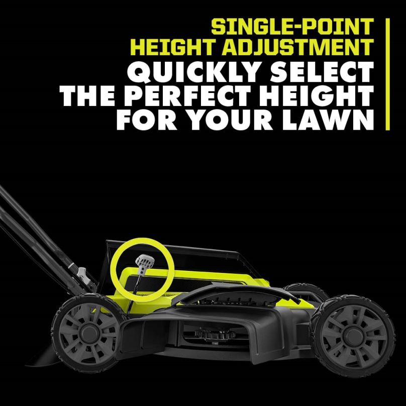 intra in sistemul 40v cu masina de tuns iarba ryobi 40v. această mașină de tuns iarbă compactă și ușoară oferă până la 30 de minute de funcționare cu bateria inclusă de 40 V 6 Ah, oferindu-vă performanță la gaz prin apăsarea unui buton, fără probleme sau întreținere. cu șapte poziții diferite de înălțime, variind de la 1,5 la 4 inci, puteți selecta rapid înălțimea perfectă pentru gazonul dvs. cu reglarea înălțimii într-un singur punct. În plus, sistemul ryobi 40v vă permite să utilizați orice baterie de 40v cu orice produs de 40v, facilitând comutarea între instrumente. beneficiați de liniște cu o garanție de 5 ani pentru instrumente de la producător și o garanție de 3 ani pentru baterie și obțineți tot ce aveți nevoie cu mașina de tuns iarba ry401010 40v 18″ inclusă, bateria cu litiu op40605 40v 6ah, încărcătorul op404 40v, cheia de pornire, lateralăjgheab de descărcare și manuale de utilizare.