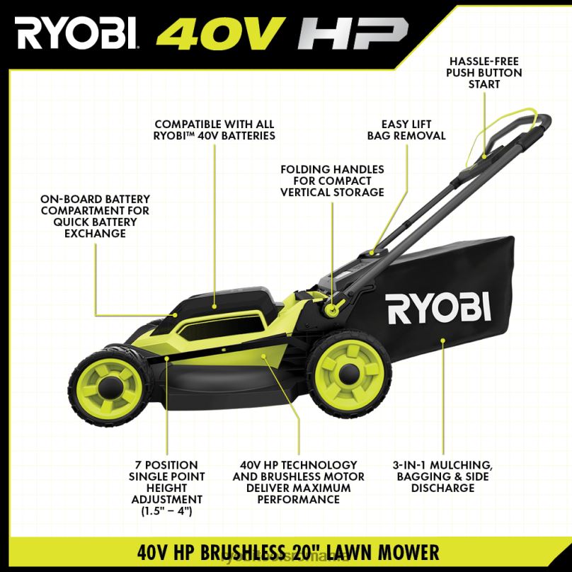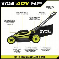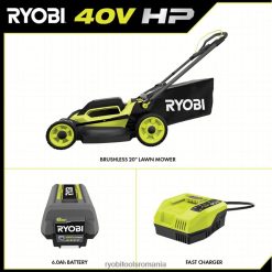 RYOBI Kit mașină de tuns iarba fără perii de 40 V HP cu 20 împingeri în aer liber A68ND238