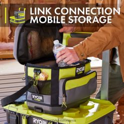 sistemul modular de stocare ryobi link revoluționează industria de depozitare, permițându-vă să vă organizați, să accesați și să vă transportați viața. frigiderul ryobi link 17″ cu laturi moi are un design rezistent la transpirație, cu reținere a gheții de 24 de ore și o capacitate de 24 de doze. Cu această răcitoare veți fi pregătit pentru orice șantier sau aventură, de la plajă la camping. buzunarul izolat al capacului este spațiul perfect pentru a păstra articolele, cum ar fi alimentele, separate și răcite. Cele 3 buzunare exterioare depozitează cu ușurință articole suplimentare, cum ar fi depozitarea uneltei. Ca să nu mai vorbim că deschizătorul de sticle inclus este atașat, astfel încât să nu fiți niciodată lăsat cu mâna goală. transportați folosind confortul mânerul superior sau folosiți cureaua de umăr căptușită inclusă.Acest frigider poate fi atașat cu ușurință la cutia dvs. de instrumente mobilă pentru a călători cu dvs. oriunde.Mai bine, face parte dinlinia de produse de sisteme modulare de stocare ryobi link care utilizează aceeași tehnologie de blocare pentru a vă conecta perfect nevoile de stocare mobilă și staționară. dețineți spațiul dvs. cu sistemul de stocare modular ryobi link.