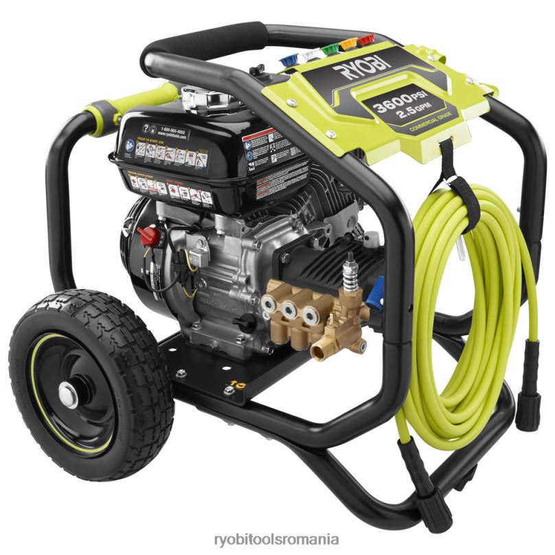 mașina de spălat cu presiune ryobi de 3600 psi este echipată cu un motor puternic honda gx200 de serviciu comercial pentru a vă ocupa de cele mai dificile lucrări de curățare. pompa profesională triplex cu cap din alamă furnizează 2,5 gpm, iar o accelerație reglabilă vă permite să setați presiunea la alegerea dvs. – făcând-o ideală pentru orice sarcină de curățare. furtunul de înaltă presiune de 35 ft vă extinde raza de acțiune, astfel încât să puteți accesa cu ușurință orice zonă, iar mânerul auxiliar sporește confortul în timp ce curățați. Depozitarea la bord a accesoriilor, face ca duzele să fie schimbate cu ușurință și convenabil oricând este necesar. această mașină de spălat cu presiune dispune de roți mari de 10 inchi, fără plat, care permit un transport ușor și un mâner reversibil pentru depozitare compactă atunci când lucrarea este terminată. mașina de spălat cu presiune ryobi 3600 psi honda gx200 este susținută de o unitate impresionantă de 5 ani și o garanție de 3 ani la motor.