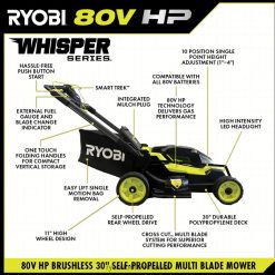 RYOBI Mașină de tuns iarba autopropulsată fără perii 80v hp seria 30 cu tăiere transversală în aer liber A68ND233