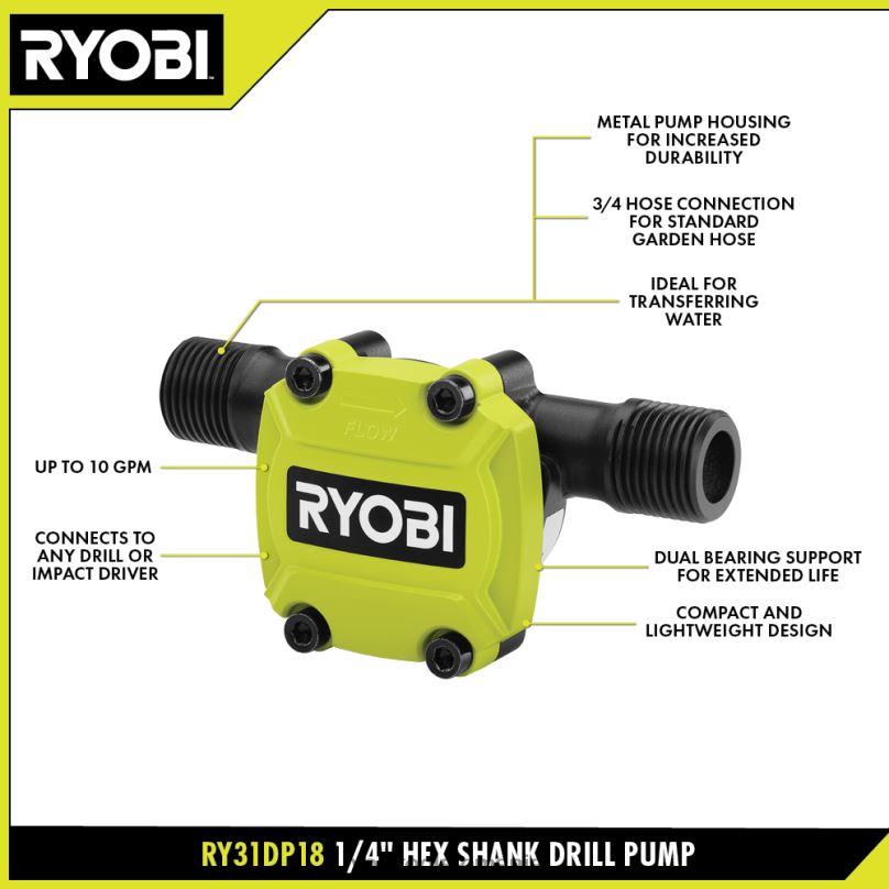 RYOBI Pompă de foraj cu tijă hexagonală 1/4 accesorii A68ND850