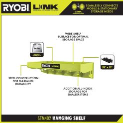 sistemul modular de stocare ryobi link revoluționează industria de depozitare, permițându-vă să vă organizați, să accesați și să vă transportați viața. raftul suspendat ryobi link este conceput pentru a vă maximiza spațiul de depozitare. suprafața largă a raftului și cele 6 cârlige j permit o organizare maximă în spații înguste. construcția din oțel permite o capacitate de greutate de 50 lb. Cel mai bun dintre toate, face parte din linia de produse de sisteme modulare de depozitare ryobi link care utilizează aceeași tehnologie de blocare. dețineți spațiul dvs. cu sistemul de stocare modular ryobi link.