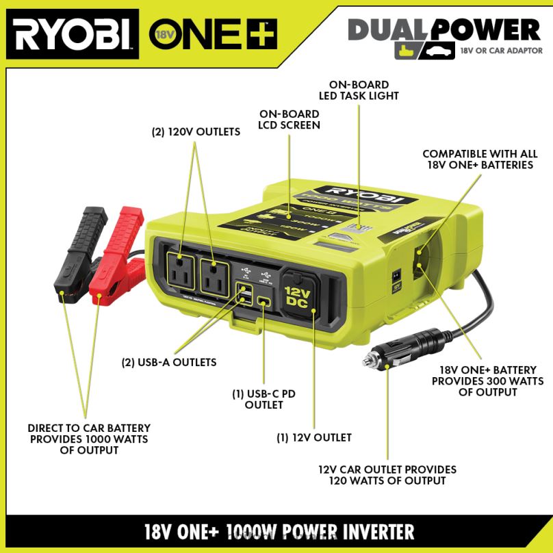 RYOBI Sursă de alimentare auto 18v one+ 1000 watt unelte A68ND528
