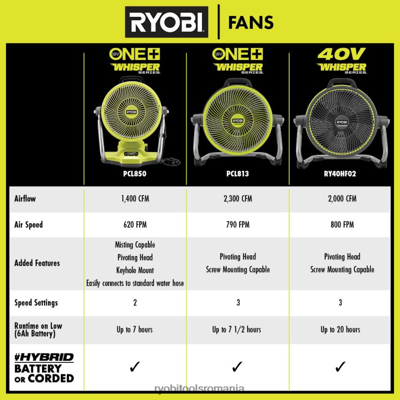 extindeți-vă sistemul ryobi 18v one+ cu tunul cu aer ryobi 18v one+ hibrid whisper series 14″. acum face parte din șoapta noastră seria, acest ventilator este cu 55% mai silențios și are o viteză a aerului cu 35% mai mare cu 2.300 cfm. Personalizați-vă fluxul de aer prin 3 setări (înalt/mediu/jos), cap pivotant la 225 de grade, mâner de transport și opțiuni de montare pentru o plasare precisă a aerului de fiecare dată. adaptorul de alimentare inclus și cureaua pentru cablu este un bonus suplimentar pentru a oferi putere și portabilitate maximă.cel mai bun dintre toate, face parte din sistemul ryobi 18v one+ de peste 280 de produse fără fir care funcționează toate pe aceeași platformă de baterie.acest șoaptă hibrid 18v one+ tunul cu aer din seria de 14″ este susținut de garanția producătorului ryobi de 3 ani și include (1) serie de șoaptă hibrid pcl813 18vs Ventilator tun cu aer de 14 inchi, (1) adaptor de alimentare pentru mufa și (1) manual de utilizare. baterie și încărcător vândute separat.