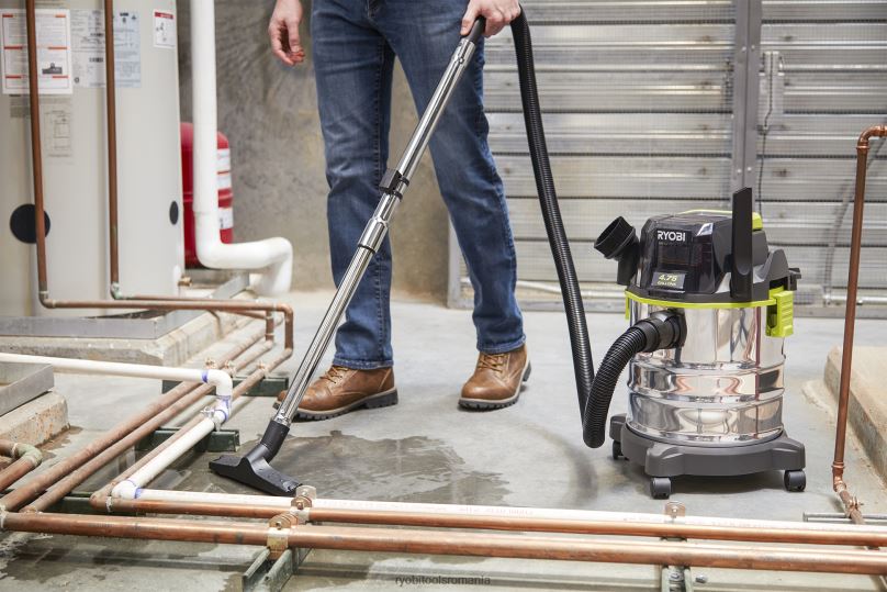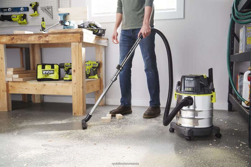 extinde-ți sistemul ryobi 18v one+ cu aspiratorul fără fir pwv201b de 4,75 galoane umed/uscat (numai unealta). acest aspirator alimentat de 18 V oferă confortul unui instrument fără fir și oferă o putere puternică de 40 cfm. acest aspirator are o cuvă din oțel inoxidabil pentru o durabilitate sporită. cele patru roți pivotante se rotesc la 360 de grade, ceea ce oferă o mobilitate echilibrată maximă, rulând peste obstacole, cum ar fi cablurile. Depozitarea integrată pentru accesorii ține în mod convenabil bagheta telescopică de extensie, unealta pentru crăpături, duza de podea și peria de praf. furtunul flexibil de 5 ft. x 1-3/8 in. se răsucește bine în poziție pentru a evita deconectarea accidentală. aspiratorul ryobi pentru umezeală/uscare de 4,75 galoane are un mâner pliabil care facilitează transportul la mizerie și se așează pe plan plat și depozitat după terminarea lucrării. thÎncuietoarele supradimensionate permit demontarea cu ușurință a capacului și golirea rezervorului. acest vid include un filtru de spumă pentru aplicații umede și un filtru cu cartuș pentru aplicații uscate. susținut de garanția producătorului ryobi de 3 ani, aspiratorul 18v one+ 4,75 galoane umed/uscat include un furtun flexibil de 5 ft. x 1-3/8 in., baghetă de extensie telescopică, unealtă pentru crăpături, duză pentru podea, perie de praf, filtru de spumă , cartuș de filtru și manuale de utilizare. bateria și încărcătorul sunt vândute separat.