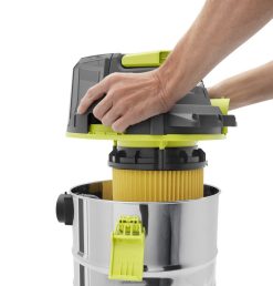 extinde-ți sistemul ryobi 18v one+ cu aspiratorul fără fir pwv201b de 4,75 galoane umed/uscat (numai unealta). acest aspirator alimentat de 18 V oferă confortul unui instrument fără fir și oferă o putere puternică de 40 cfm. acest aspirator are o cuvă din oțel inoxidabil pentru o durabilitate sporită. cele patru roți pivotante se rotesc la 360 de grade, ceea ce oferă o mobilitate echilibrată maximă, rulând peste obstacole, cum ar fi cablurile. Depozitarea integrată pentru accesorii ține în mod convenabil bagheta telescopică de extensie, unealta pentru crăpături, duza de podea și peria de praf. furtunul flexibil de 5 ft. x 1-3/8 in. se răsucește bine în poziție pentru a evita deconectarea accidentală. aspiratorul ryobi pentru umezeală/uscare de 4,75 galoane are un mâner pliabil care facilitează transportul la mizerie și se așează pe plan plat și depozitat după terminarea lucrării. thÎncuietoarele supradimensionate permit demontarea cu ușurință a capacului și golirea rezervorului. acest vid include un filtru de spumă pentru aplicații umede și un filtru cu cartuș pentru aplicații uscate. susținut de garanția producătorului ryobi de 3 ani, aspiratorul 18v one+ 4,75 galoane umed/uscat include un furtun flexibil de 5 ft. x 1-3/8 in., baghetă de extensie telescopică, unealtă pentru crăpături, duză pentru podea, perie de praf, filtru de spumă , cartuș de filtru și manuale de utilizare. bateria și încărcătorul sunt vândute separat.