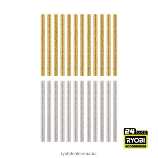 setul ryobi de 24 de mini sclipici lipici este perfect pentru utilizare pe lemn, plastic, ceramică, țesături, carton și diverse țesături. capacitatea de topire dublă vă pregătește pentru diverse aplicații. pentru cele mai bune rezultate, împerecheați întotdeauna uneltele ryobi cu accesorii ryobi. ryobi a1932412 include 12 lipici cu sclipici argintiu și 12 mini bețișoare de lipici cu sclipici auriu.