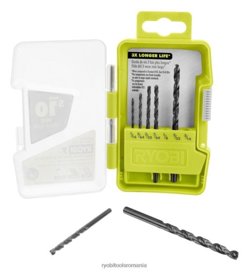 ryobi introduce setul de burghie din oxid negru cu tijă rotundă din 7 piese. acest sortiment de burghie este perfect pentru materiale precum lemn, metal și suprafețe din plastic. aceasta este o soluție compactă perfectă pentru proiectele dvs. din jurul casei. Bițile sunt construite din oțel de mare viteză cu un finisaj oxid negru pentru a oferi durabilitate superioară și o durată de viață de 3 ori mai mare. O altă caracteristică a acestor burghii este punctul de despicare la 135 de grade pentru a găuri la contact și pentru a preveni mersul bitului. capacul transparent al carcasei oferă vizibilitate pentru un acces mai ușor. acest sortiment include bucăți variind de la 1/16″ la 3/16″ pentru toate nevoile dvs. de bricolaj. acest set include (1) burghie din oxid negru de 1/16″, (1) burghie din oxid negru de 5/64″, (1) burghie din oxid negru de 3/32″, (1) burghie din oxid negru de 7/64″ , (1) 1/8″ oxid negruburghie, (1) burghie din oxid negru de 5/32 inchi, (1) burghie din oxid negru de 3/16 inchi.