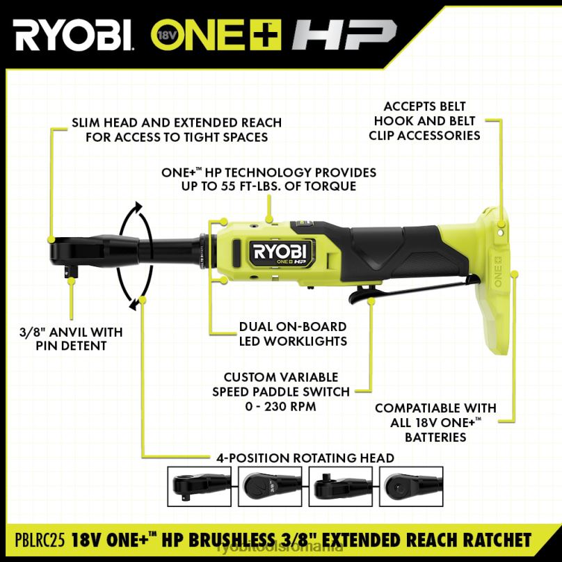 RYOBI Clichet 18v one+ hp fără perii cu rază extinsă de 3/8 Unelte electrice A68ND57