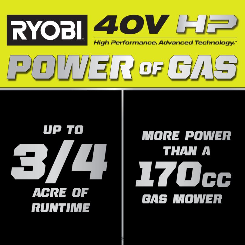 - Tehnologia 40 V HP oferă până la 70 de minute de funcționare