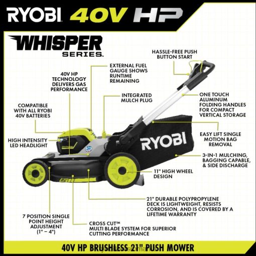 Mașina de tuns iarba fără perii ryobi 40v hp 21″ din seria whisper cu lame multiple oferă puterea de gaz cu confortul fără perii. motorul premium hp fără perii oferă mai multă putere, o durată mai lungă de funcționare și o durată de viață mai lungă a motorului. Pornește doar cu o apăsare de buton și este ideal pentru metri de până la 3/4 acri. Dispune de porturi active duble pentru baterii și 2 baterii de 40 V 6 Ah care asigură până la 70 de minute de funcționare. Familia Whisper Series această mașină de tuns iarbă se numără printre cele mai silențioase game de produse. Sistemul de tăiere transversală cu mai multe lame de la Ryobi oferă două lame pentru performanțe superioare de tăiere sau o singură lamă pentru o durată mai lungă de funcționare. Mușca de mulci integrată permite utilizatorului să treacă rapid de la mulcire la mulcire cu doar o tragere de pârghie.indicatorul de combustibil de la bord arată starea de viață a bateriei remaining, facandu-l usor de verificat in timpul cosirii. platforma durabilă de 21 inchi este ușoară, rezistă la coroziune și este acoperită de o garanție limitată pe viață. mașina de tuns iarba are un design premium cu roți înalte de 11 inchi, iar platforma dispune de reglare a înălțimii în 7 poziții într-un singur punct pentru a selecta cu ușurință înălțimea ierbii între 1 inch. și 4″. cu funcțiile de cosire 3 în 1 puteți alege între funcțiile de însacare, mulcire și descărcare laterală. o îndepărtare ușoară a sacului de ridicare vă permite să goliți rapid și ușor sacul de iarbă. mânerele din aluminiu cu o singură atingere se pliază pentru a oferi depozitare compactă, verticală. această mașină de tuns iarbă include un încărcător rapid de 40 V pentru a vă încărca bateriile de 4 ori mai rapid decât încărcătorul standard. această mașină de tuns iarbă este fabricată cu mândrie în SUA cu materiale globale și este susținută de o garanție de 5 ani pentru scule.