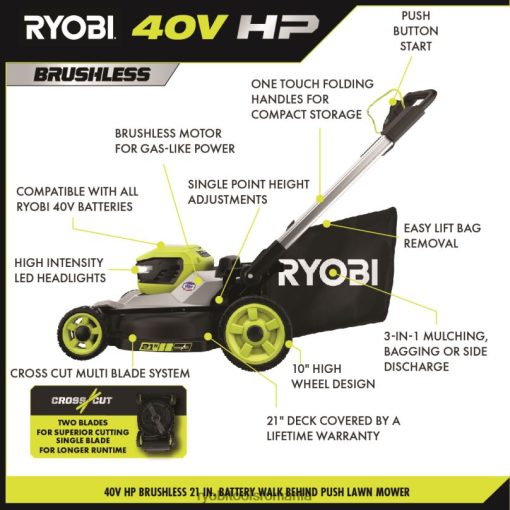 mașina de tuns iarba fără perii ryobi 40v hp de 21″ cu mai multe lame, fără perii, oferă puterea de gaz cu confortul fără perii. motorul oferă mai multă putere, o durată de funcționare mai lungă și o durată de viață mai lungă a motorului. Pornește doar cu o apăsare de buton, fără bătaia de cap de benzină, ulei sau întreținere. Această mașină de tuns tuns iarbă este ideală pentru metri de până la 1/2 acru, având dublu porturi active pentru baterie și o baterie de 40 volți, 7,5 Ah, care oferă până la 50 de minute de funcționare. Sistemul de tăiere transversală cu mai multe lame oferă două lame pentru performanțe superioare de tăiere sau o singură lamă pentru o durată mai lungă de funcționare. suportul durabil de 21″ este ușor , rezistă la coroziune și este acoperit de o garanție pe viață. mașina de tuns iarbă are un design mare cu roți înalte de 10 inchi pentru o manevrabilitate ușoară, iar puntea are 7-pAjustare a înălțimii unui singur punct pentru a selecta cu ușurință înălțimea ierbii între 1,5″ și 4″. cu funcțiile de cosit 3-în-1 puteți alege între funcțiile de însac, mulcire sau descărcare laterală. o îndepărtare ușoară a sacului cu o singură mișcare vă permite să goliți rapid și ușor sacul de colectare a ierbii și mânerele din aluminiu cu o singură atingere se pliază pentru depozitare compactă, verticală. această mașină de tuns iarbă include un încărcător rapid de 40 V pentru a vă încărca bateriile de 4 ori mai rapid decât încărcătorul standard. această mașină de tuns iarbă este fabricată cu mândrie în SUA cu materiale globale și este susținută de o garanție de 5 ani pentru scule.