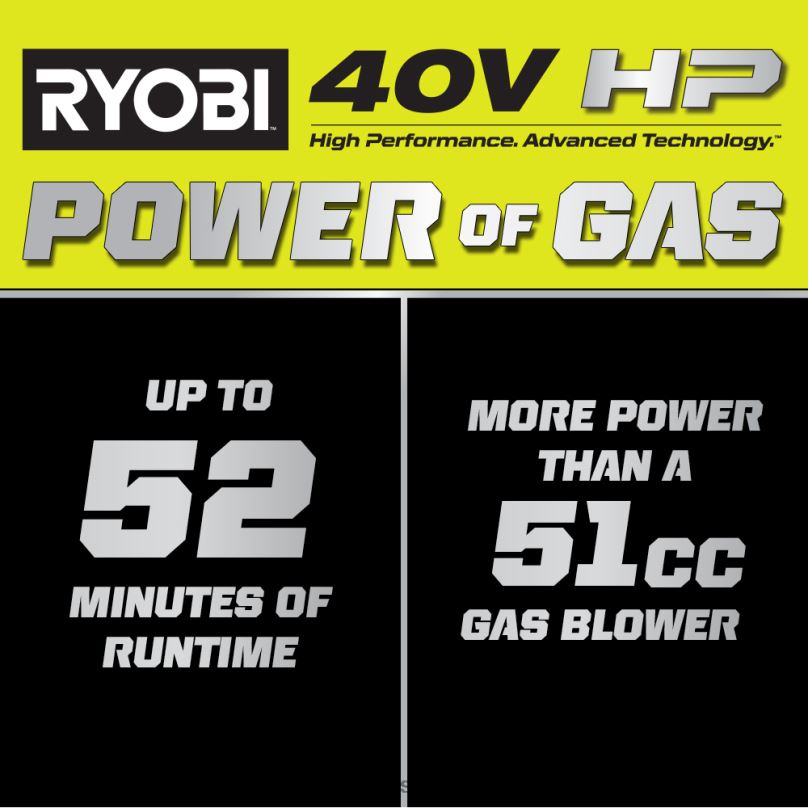 - Tehnologia 40v CP oferă mai multă putere decât o suflantă cu gaz de 51cc