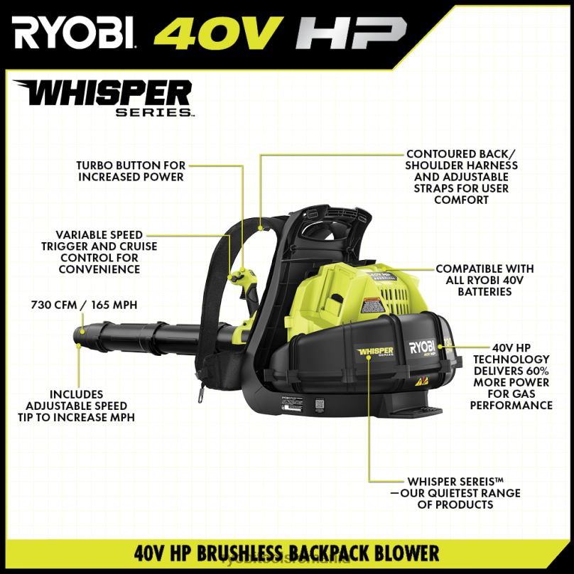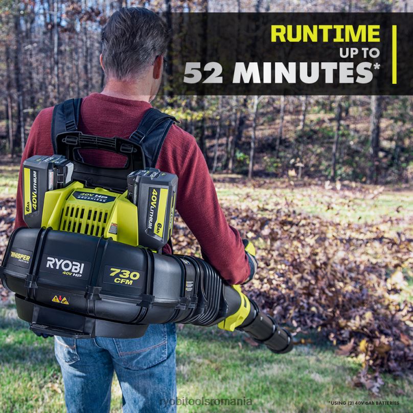 îmbunătățiți-vă sistemul de 40 V cu setul de suflantă de rucsac fără fir de 40 V CP. folosind tehnologia de 40 V CP, această suflantă cu rucsac oferă mai multă putere decât o suflantă pe gaz de 51 cc, ceea ce o face un adevărat înlocuitor de gaz. Suflanta de rucsac hp oferă până la 52 de minute de funcționare cu (2) baterii cu litiu de 40 V 6 Ah incluse. Tehnologia de 40 V CP combină un motor fără perii, o electronică avansată și tehnologia cu litiu de înaltă performanță, pentru a aborda cu ușurință frunzele umede și resturile mai grele de gazon cu 730 cfm și 165 mph. aceasta este performanța la gaz cu doar apăsarea unui trăgaci. fără gaz, fără întreținere, fără bătăi de cap. Proiectat cu spumă de amortizare a zgomotului, această suflantă din seria Whisper este proiectată pentru a fi cu 85% mai silențioasă decât suflantele cu gaz și chiar și alte suflante fără fir, astfel încât să puteți lucra oricând fără deranjamente.g altele. un declanșator cu viteză variabilă și un buton turbo vă permit să controlați ieșirea de aer, astfel încât să puteți apela înapoi atunci când vă aflați în zone delicate, cum ar fi suflarea frunzelor din paturile de mulci și să activați butonul turbo când curățați resturile mai dure. adăugați vârful de viteză personalizabil pentru o viteză crescută a aerului. cel mai bun dintre toate, face parte din sistemul ryobi 40v în care orice baterie de 40v funcționează cu orice produs de 40v. acest kit de suflantă de 40 V CP este susținut de garanția de 5 ani a producătorului ryobi și de 3 ani de garanție a bateriei de la producător. acest kit include suflantul de rucsac ry404017 40v, (2) baterii op40605 40v 6ah, încărcător rapid op406 40v, tuburi de suflare, vârful de viteză și manualele de utilizare.