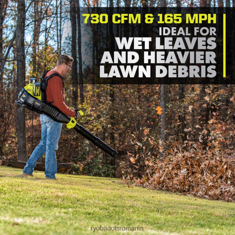 - 730 cfm și 165 mph ideal pentru frunzele umede și resturile mai grele de gazon