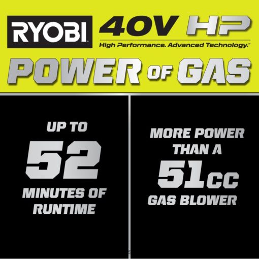 - până la 52 de minute de funcționare cu (2) baterii incluse de 40v 6ah