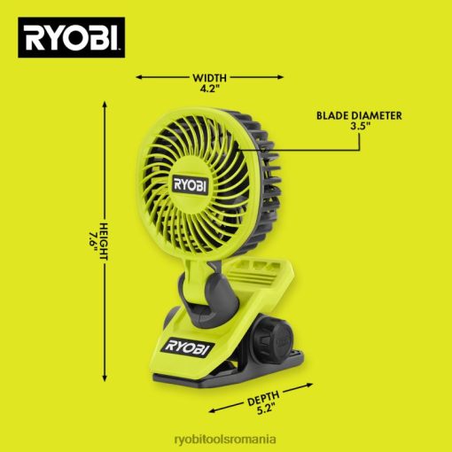 ryobi introduce setul de ventilator cu clemă de litiu USB. acest ventilator cu clemă cu litiu USB este cel mai compact și portabil ventilator al nostru de până acum. păstrați-vă rece cu peste 7 ore de funcționare și 2 setări de viteză. acest ventilator este în egală măsură compact și puternic, cu până la 135 de picioare cubi pe minut (cfm). capul pivotant multidirecțional și baza de clemă integrată cu o capacitate de clemă de 1-1/4″ fac din aceasta soluția de răcire versatilă supremă. Dimensiunea compactă și buclele de șnur integrat sporesc portabilitatea acestui ventilator, astfel încât să-l puteți aduce cu dvs. oriunde. Caracteristicile acestui produs un indicator LED pentru a semnala când bateria este încărcată (verde) sau are bateria descărcată (roșu) în timpul utilizării ventilatorul cu clemă cu litiu USB face parte din sistemul litiu USB care oferă soluții compacte, portabile și reîncărcabile pentru dispozitive fără fir.datorie si productivitate. acest kit de ventilator cu clemă usb cu litiu este susținut de garanția producătorului de 2 ani ryobi și include (1) ventilator cu clemă usb cu litiu fvf51, (1) baterie litiu litiu fvb01 2ah, cablu USB și manual de utilizare.