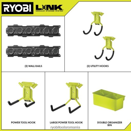 sistemul modular de stocare ryobi link revoluționează industria de depozitare, permițându-vă să vă organizați, să accesați și să vă transportați viața. link-ul ryobi 7 buc. Setul de depozitare pe perete vă permite să vă optimizați depozitarea în garaj cu o organizare personalizată pentru depozitarea sculelor. cele două șine de perete de 33 inchi sunt un organizator de perete de garaj ușor de instalat, cu puncte de montare vizibile și asigură angajarea maximă a știftului pentru a susține o capacitate de greutate de 75 lb per picior. acest kit include patru cârlige de depozitare în garaj pentru a vă oferi fundația pentru a vă organiza viața și a extinde cu ușurință sistemele de depozitare în garaj cu o gamă completă de soluții de depozitare. agățați unelte de mână și electrice, echipamente de exterior, echipamente sportive și orice hobby între ele. cel mai bun dintre toate, face parte din sistemul de stocare modular ryobi linkm linie de produse care utilizează aceeași tehnologie de blocare pentru a vă conecta perfect nevoile de stocare mobilă și staționară. dețineți spațiul dvs. cu sistemul de stocare modular ryobi link.