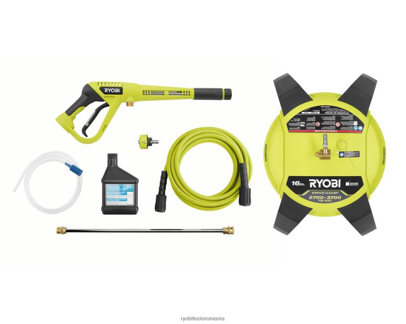 mașina de spălat cu presiune ryobi 3400 psi cu dispozitiv de curățare a suprafețelor de 16 inchi este combinația perfectă pentru a realiza cele mai grele lucrări rapid. puternicul motor honda gc190 oferă o forță de 3400 psi pentru a îndepărta murdăria, murdăria, uleiul și alte pete dure. cadrul durabil al roabei și roțile de 10 inchi facilitează transportul. această mașină de spălat cu presiune are un mâner reversibil, care face depozitarea comodă și mai compactă. furtunul de înaltă presiune de 50 ft, care nu se deteriorează, oferă o rază mai lungă de acces chiar și în zonele dificil de curățat. pentru un plus de confort, este echipat cu o duză cu schimbare rapidă 5 în 1, care vă permite să schimbați rapid modelele de pulverizare. atunci când curățați suprafețe dure, cum ar fi aleile de acces, terasele și trotuarele, utilizați soluția de curățare a suprafețelor pentru roți de 16 inchi. acest accesoriu care economisește timp curăță de până la 4 ori mai rapid decât o duză standard, cu jeturi rotative care vă oferă o cale de curățare mare, fără urme. mașina de spălat cu presiune pe gaz ryobi 3400 psi este susținută de un mandat limitat de 3 aniy și o garanție de 2 ani pentru motor.