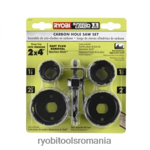 Acest set de ferăstrău cu găuri din 5 bucăți conține 4 ferăstrăi întregi din carbon și un burghiu cu vârf conic pentru găurire în lemn. Toate ferăstrăile au o cupă adâncă care permite utilizatorului să taie toate materialele de 2x într-o singură trecere și au, de asemenea, un design agresiv al dinților pentru orice întâlnire cu unghiile în timpul tăierii. fantele de evacuare de pe ferăstrăul cu gaură permit îndepărtarea ușoară a dopului. acest set este compatibil cu sistemul ryobi speed load plus de foraj.