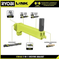 sistemul modular de stocare ryobi link revoluționează industria de depozitare, permițându-vă să vă organizați, să accesați și să vă transportați viața. Suportul pentru rafturi ryobi link 2 în 1 este conceput pentru a stoca material de construcție lung sau pentru a fi transformat într-un raft. utilizați urechile de reținere a materialului pentru a ține în siguranță pvc, cherestea, dibluri, tije etc. sau împerecheați suporturi cu un raft solid de 21″ sau un raft de sârmă de 21″. utilizați două suporturi 2-în-1 pentru a ține un raft sau adăugați un al treilea suport pentru a ține două rafturi unul lângă celălalt, împărțind suportul din mijloc. continuați să vă extindeți sistemul de rafturi adăugând un suport suplimentar și un raft la rând. cel mai bun dintre toate, face parte din linia de produse de sisteme modulare de stocare ryobi link care utilizează aceeași tehnologie de blocare pentru a vă conecta perfect m.nevoi de depozitare mobilă și staționară. dețineți spațiul dvs. cu sistemul de stocare modular ryobi link.