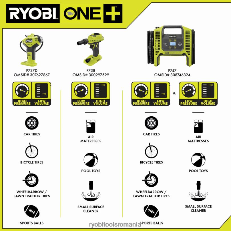 RYOBI Umflator de înaltă presiune 18v one+ cu manometru digital stil de viață și recreere de iluminat A68ND490